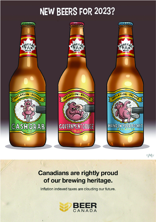Alors que l’inflation galopante fait grimper les prix des aliments, de l’essence et du logement au rythme le plus rapide depuis des décennies, la dernière chose dont les Canadiens ont besoin est une autre augmentation de la taxe sur la bière. Nous croyons que nos gouvernements devraient faire de leur mieux pour que la vie reste abordable, et non pour la rendre plus chère.