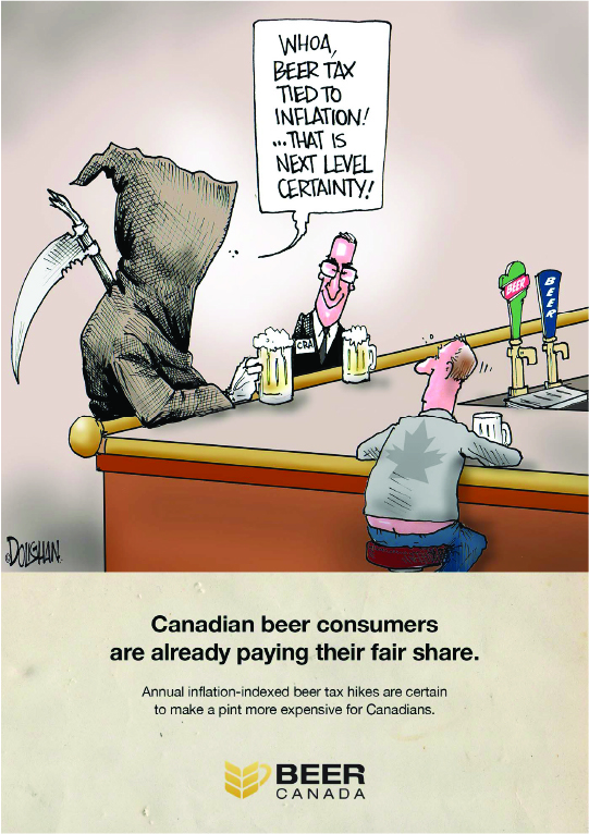Demandez à votre député de mettre fin aux augmentations automatiques indexées sur l’inflation des droits d’accise sur la bière afin d’aider les consommateurs, les travailleurs du secteur de l’hôtellerie et les Canadiens qui travaillent dur.